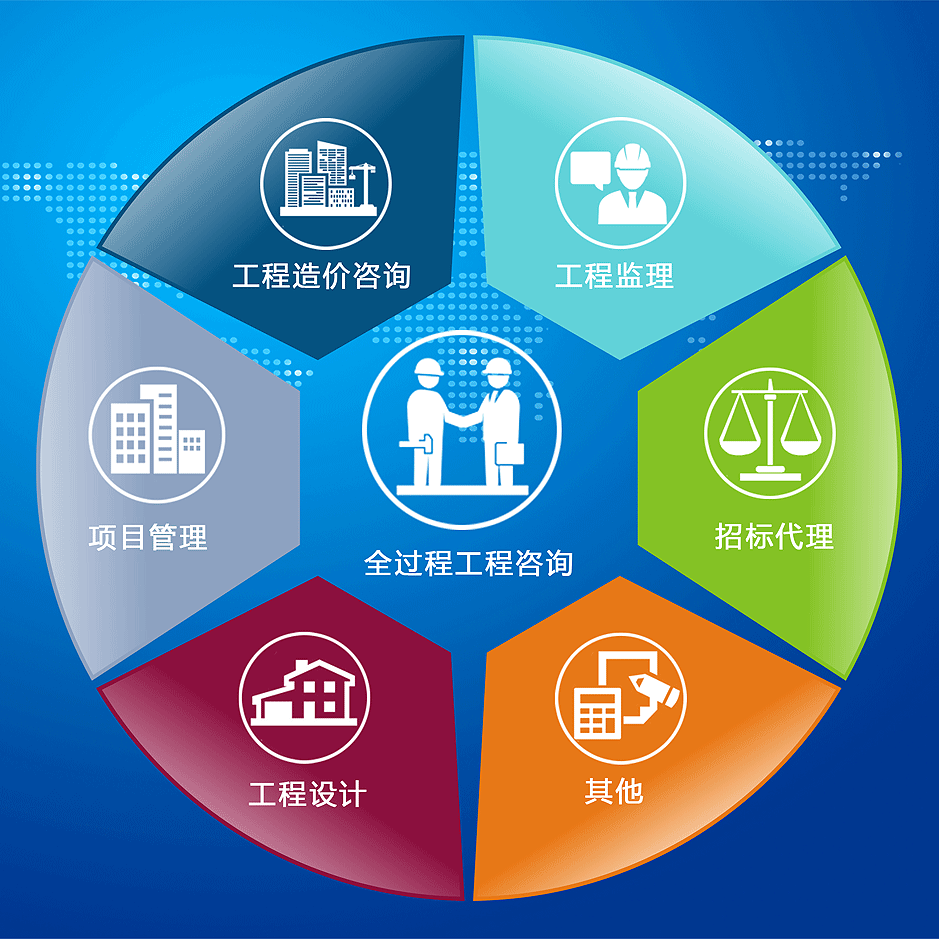 广东粤众建项目管理有限公司是一家以全过程工程咨询为主,集工程技术研发和应用的高新企业。业务涵盖工程技术研发、应用、造价、监理、设计、审计及其它工程咨询服务,总部在广东省。公司具有房屋建筑工程监理乙级、市政公用工程乙级、并通过ISO质量管理体系认证、ISO环境管理体系认证、ISO职业健康安全管理体系认证证书。
